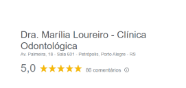 Publicado em Marta Sousa08/12/2023 A Dra Marília é uma profissional altamente qualificada. Atendimento de excelência.Publicado em Dan28/11/2023 Ótimo atendimento. Se preocupa realmente com bem estar do paciente.Publicado em karine Magalhaes28/10/2023 Dra Marília super atenciosa. Temho muito medo de dentista e tem uns 7 anos que só vou nela, transmite confiança e além de um trabalho maravilhoso. Super indico.Publicado em Bruna Fachinelli Camargo26/10/2023 Dra. Marília é excelente profissional, uma pessoa também muito honesta e atenciosa! E graças aos seus cuidados a minha saúde bucal ficou muito, muito melhor!(transformação)! Sou muito grata! 🥰Publicado em Marcelo Schumacher25/10/2023 A dra Marília é incrível em sua profissão. Muito atenciosa, excelente profissional, serviços muito bem feitos, usa materiais de grande qualidade. Minha esposa e eu somos clientes há quase 10 anos e nunca tivemos qualquer problema.Publicado em Maria de Fatima Alves23/10/2023 Sou paciente da Dra. Marília loureiro há cerca de 14 anos. Excelente profissional! Super atualizada! Conversa, explica sobre o trabalho e técnicas mais apropriadas para cada caso. Além de tudo, muito humana e querida!Publicado em Tais Colombo23/10/2023 Ótimo atendimento, profissional competente que sabe o que faz.....Publicado em bianca formentini10/10/2023 Ótima, muito atenciosa!Avaliação totalizada Google 5.0 de 5, com base em 88 avaliações